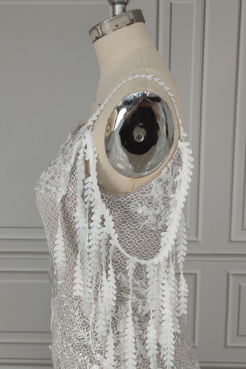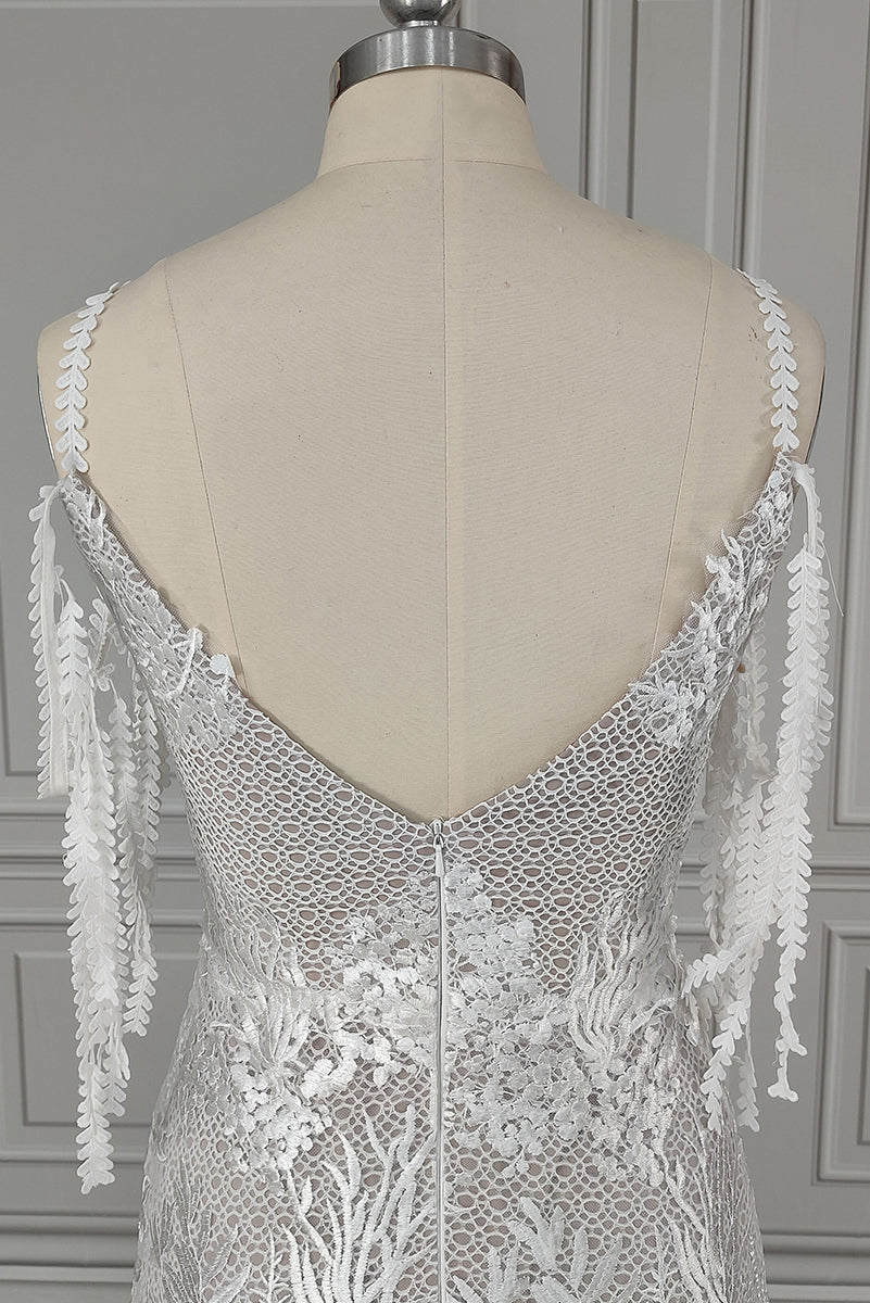 Détails de la Robe de Mariée Bohème en Dentelle avec un Dos Nu en V Profond